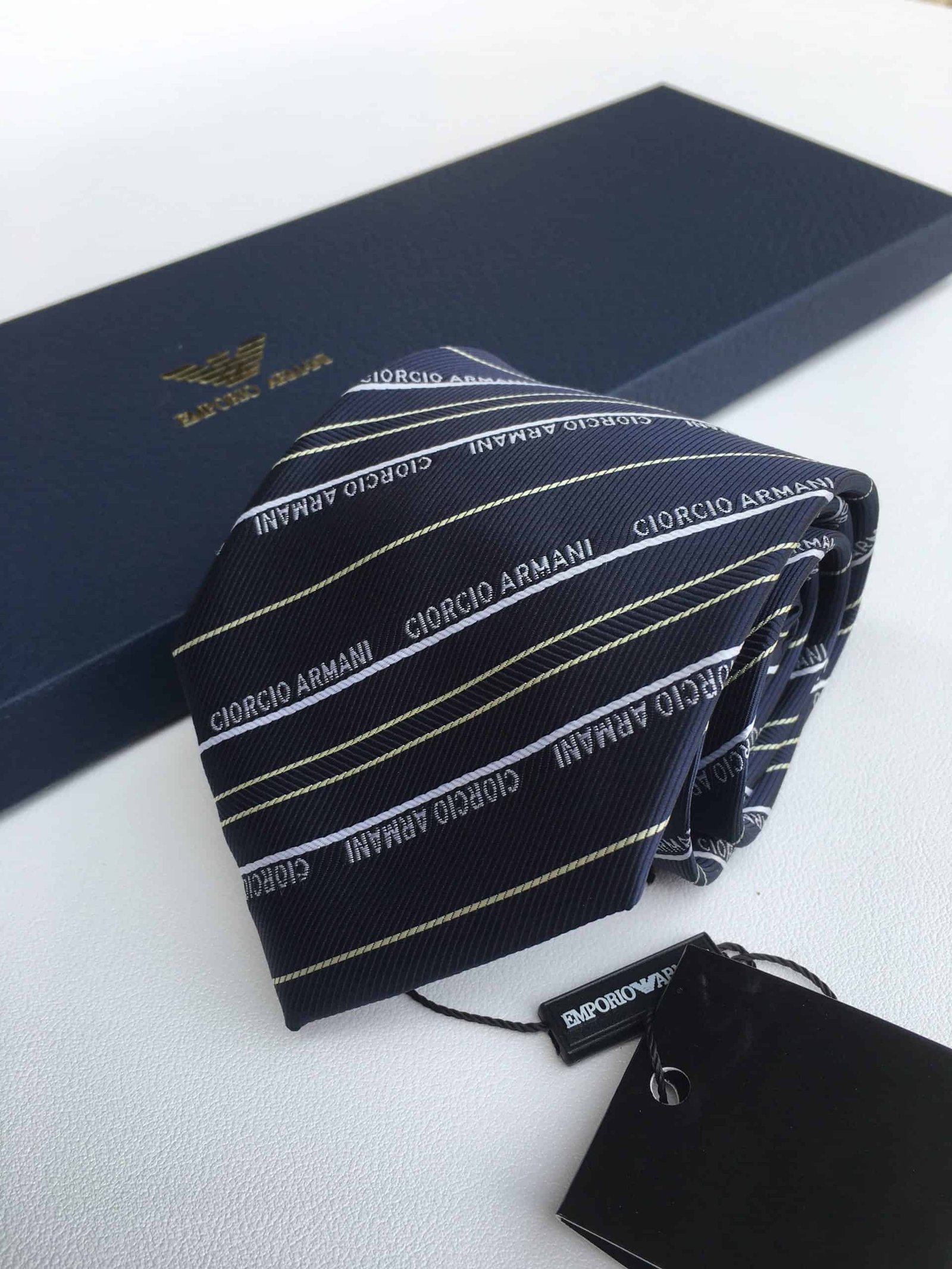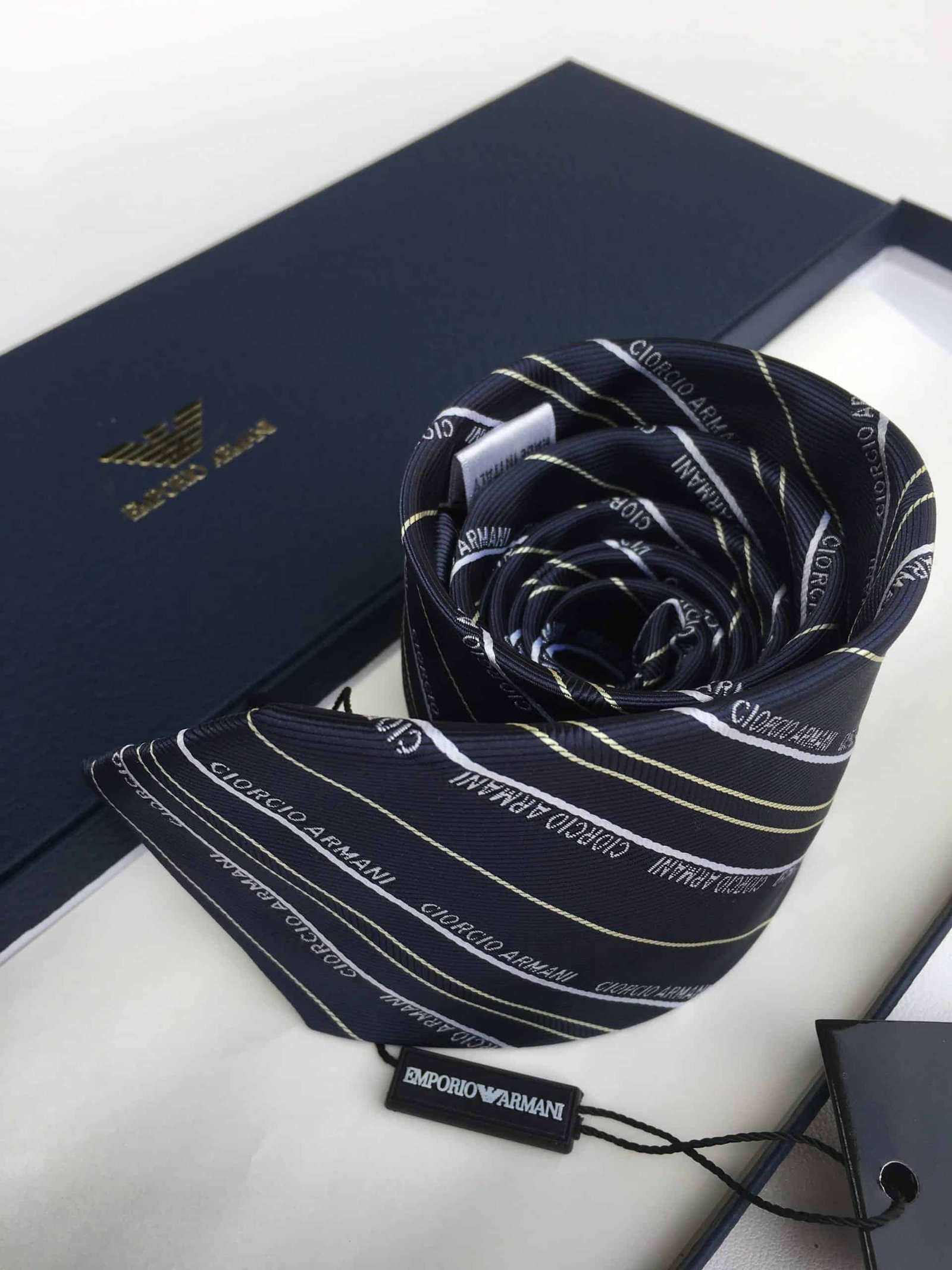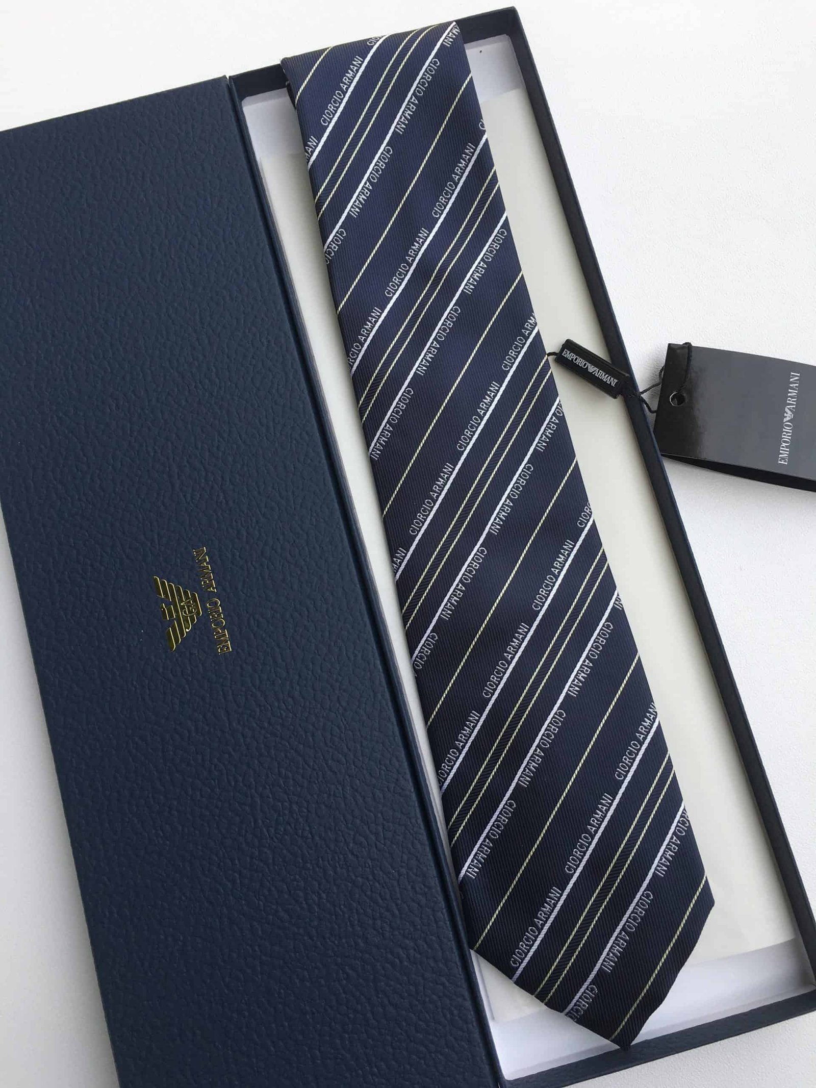 Armani Tie With Embroidered Text Black? Armani Men Tie
