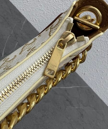 Celine Medium Ava Chain In Triomphe Canvas White For Women 10in/25cm