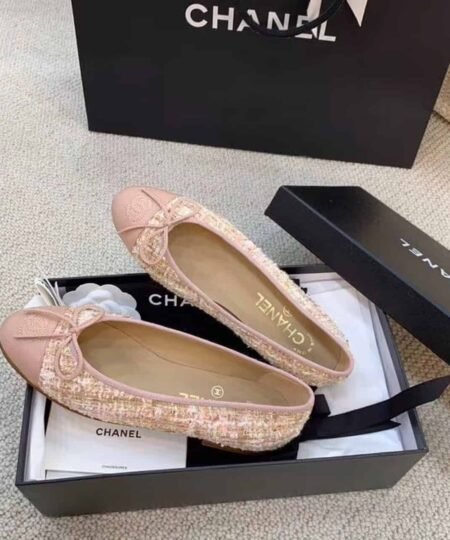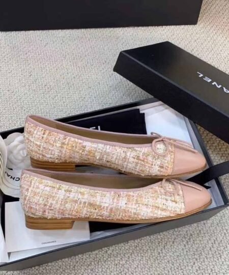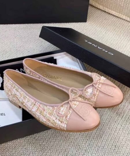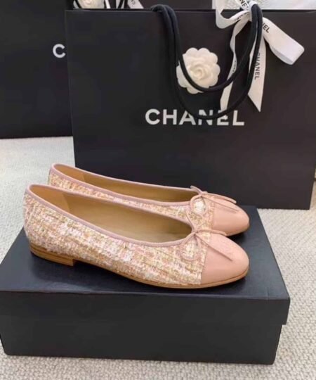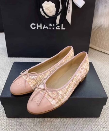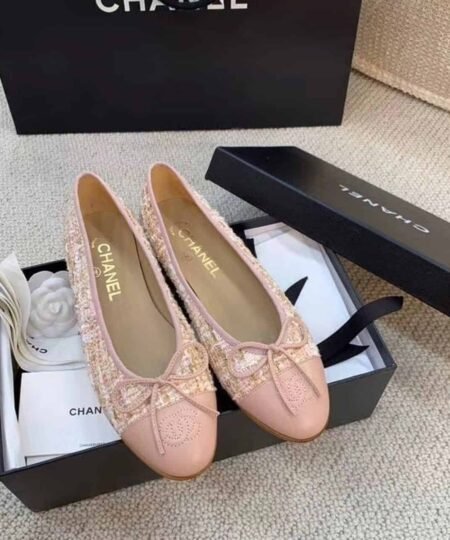Chanel Ballerina Flats Tweed and Grosgrain Light Pink For Women, Women’s Shoes G02819