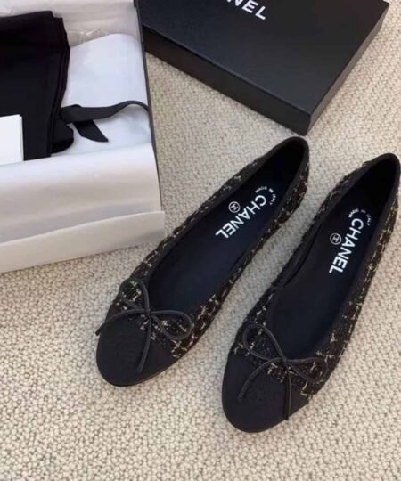 Chanel Ballerina Flats Tweed Black/Gold For Women, Women’s Shoes G02819 K4311