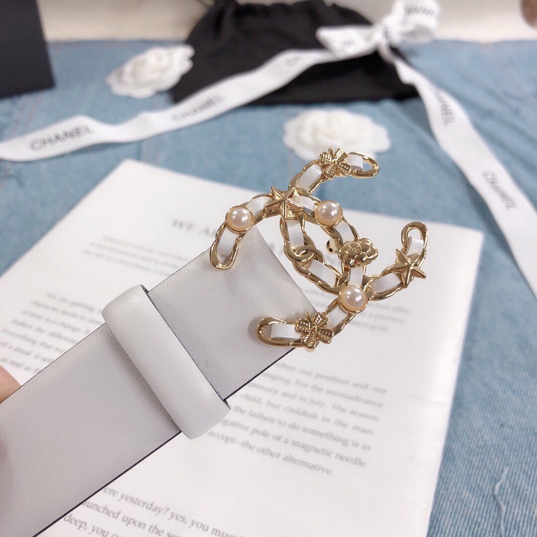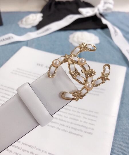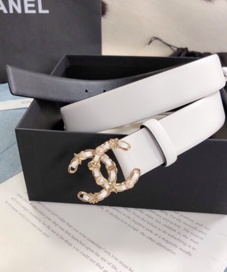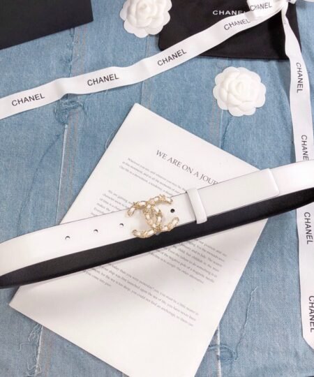 Chanel Belt With Double C Buckle White Gold Toned Hardware Women Belt
