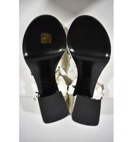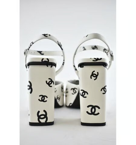 - One of the sturdy shoe models that will create a craze this season is definitely CC 100mm Heeled Sandal from Chanel brand.