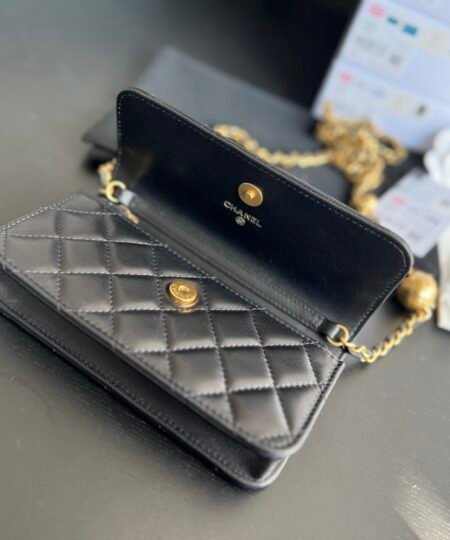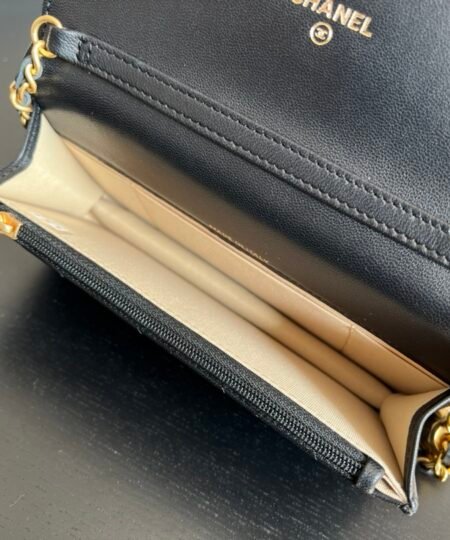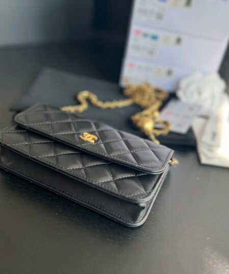CC Wallet On Chain Bag is Chanel’s stylish and compact handbag. The main colors are extremely luxurious. The logo and strap are made of gold-tone metal to help create accents and enhance the elegance of this handbag. The chain is interlaced with straps and links, the length of the strap can be adjusted with a round button in gold tone
