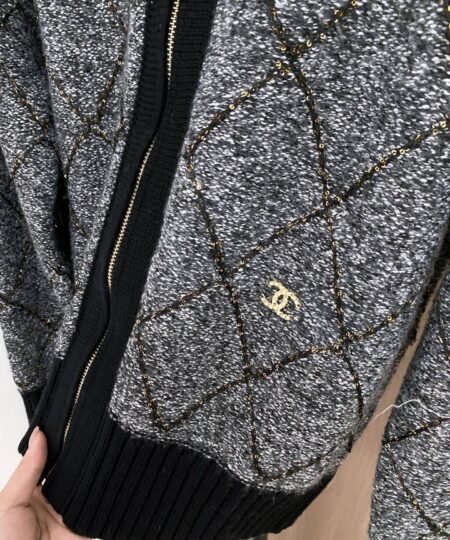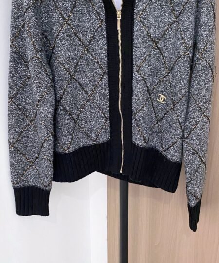 Chanel Clothes – Long Sleeves zip-up Cardigan with contrast stitching Gray & Black For Women