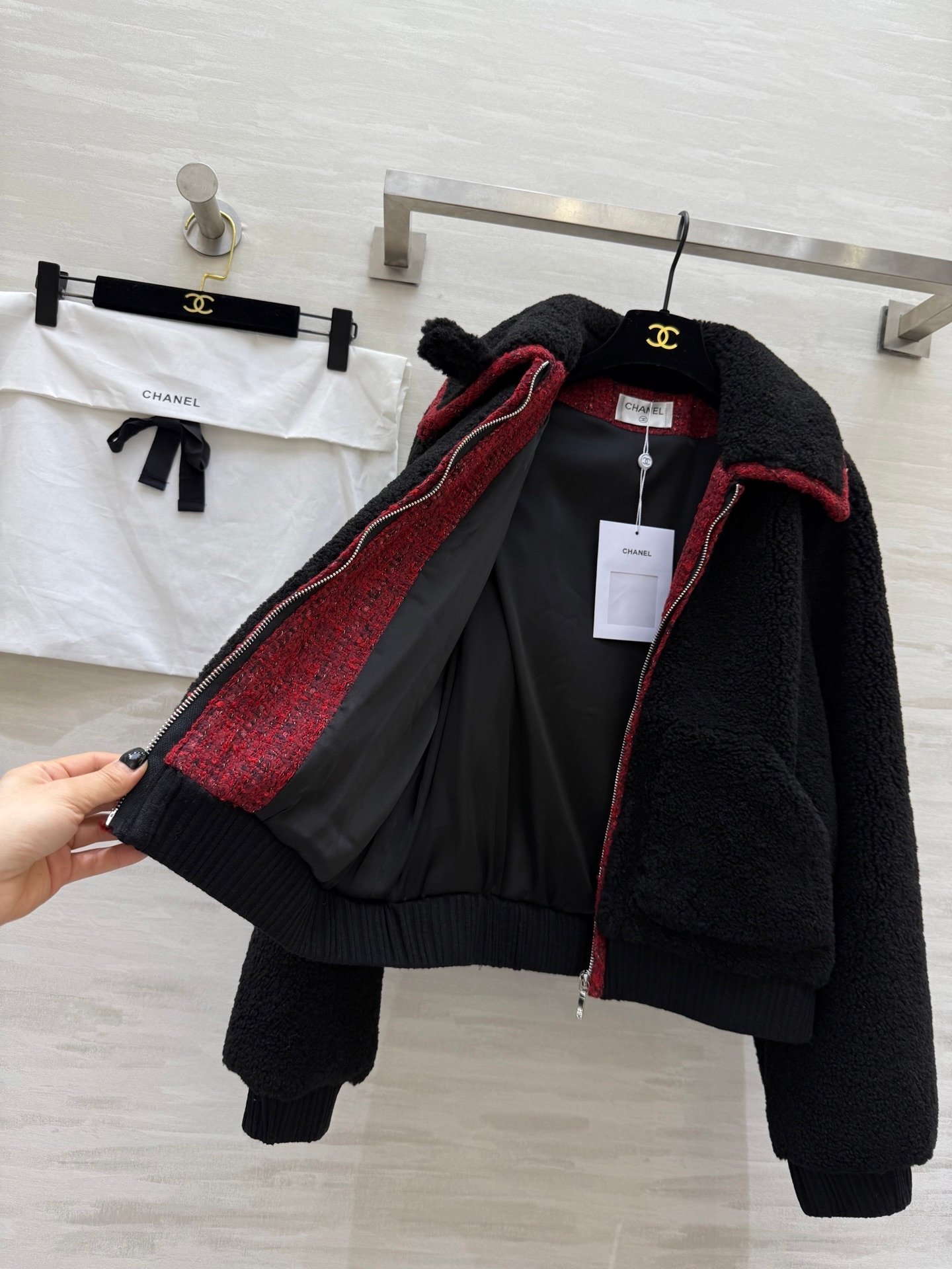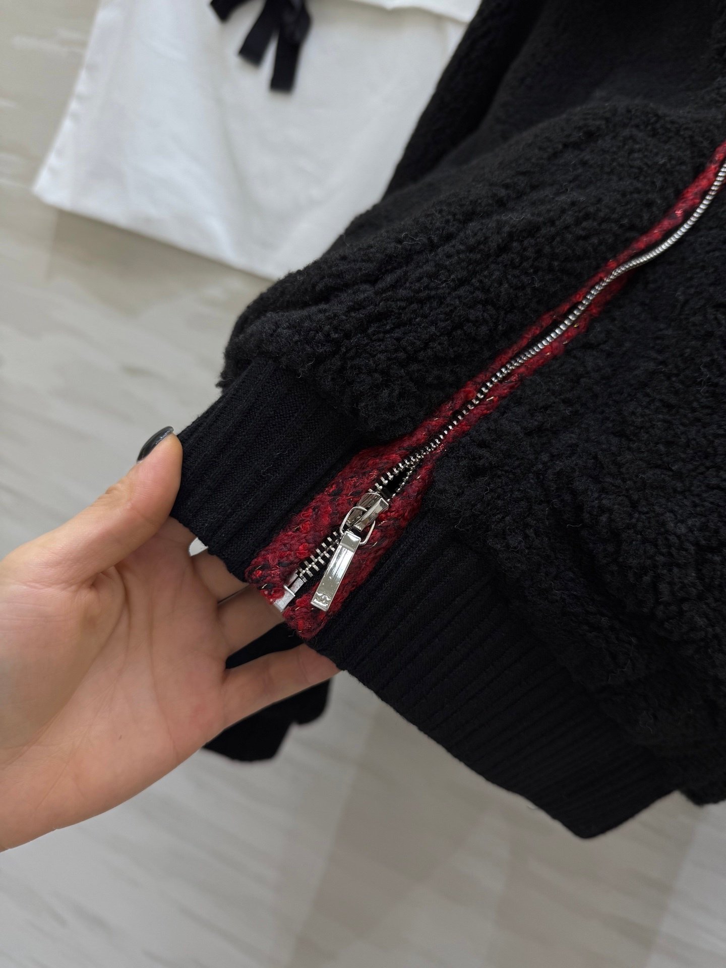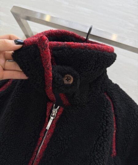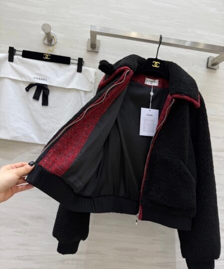 Chanel Clothes – Teddy fleece Jacket Black&Red For Women