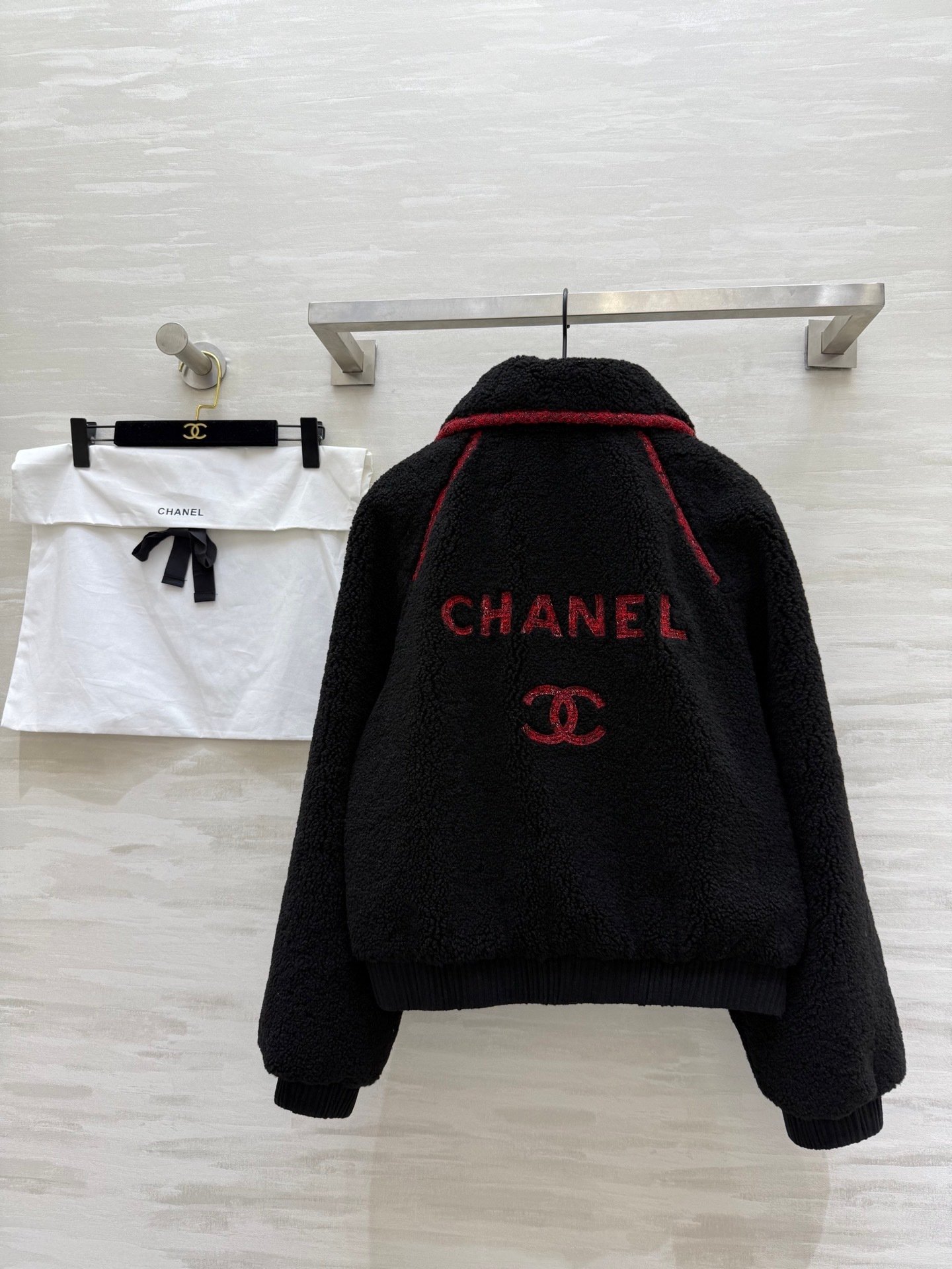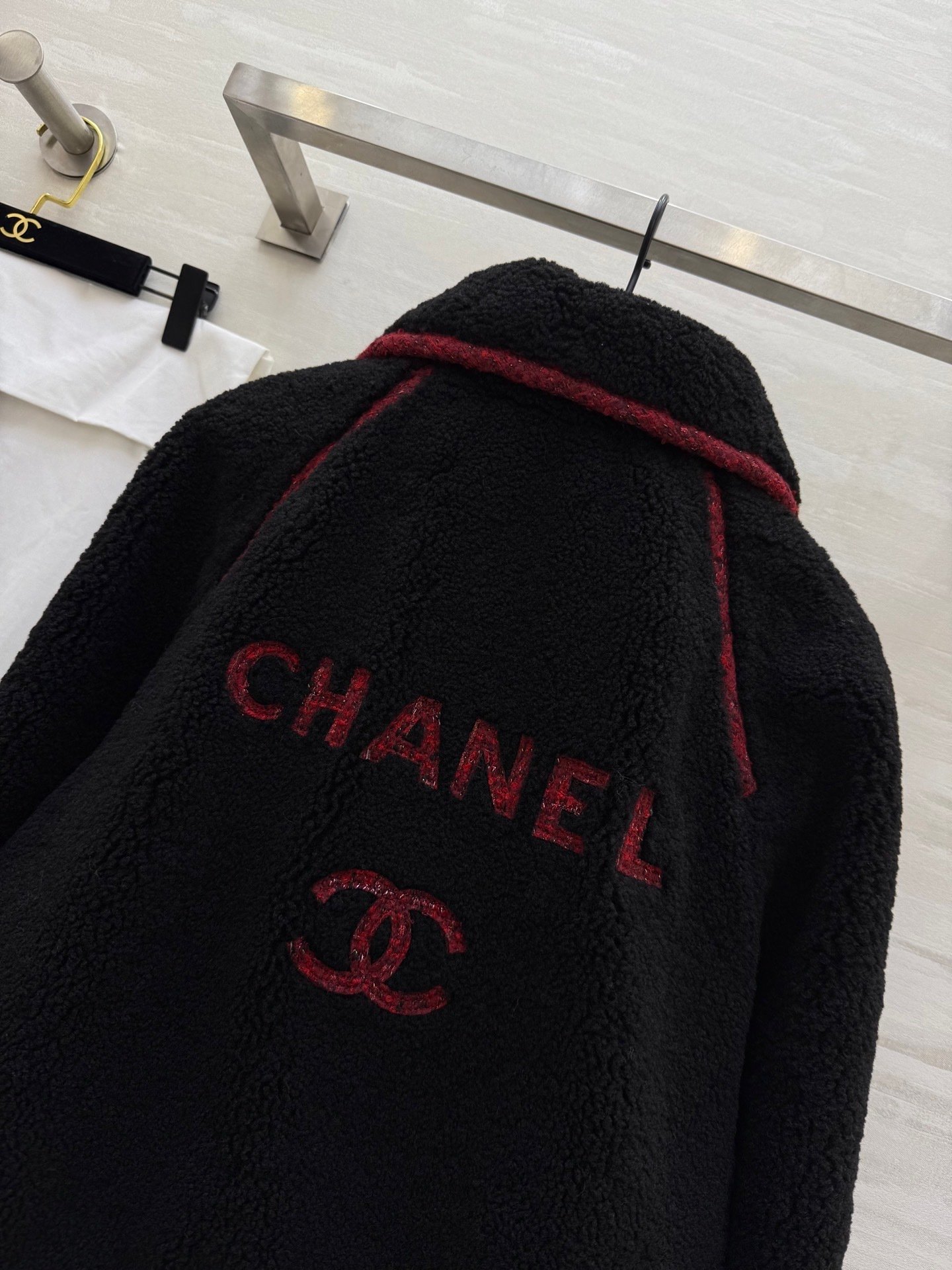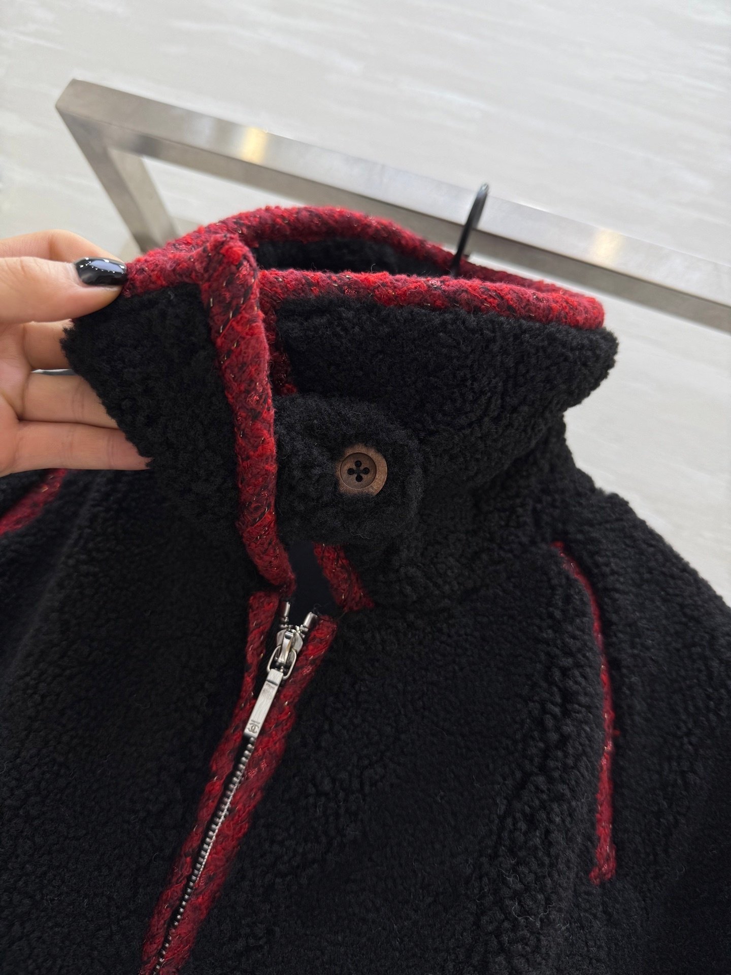Chanel Clothes – Teddy fleece Jacket Black&Red For Women