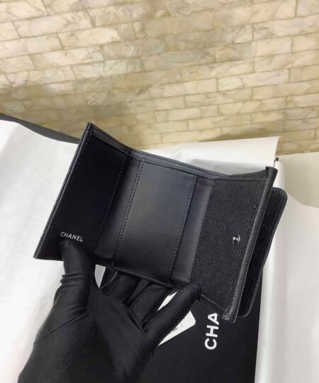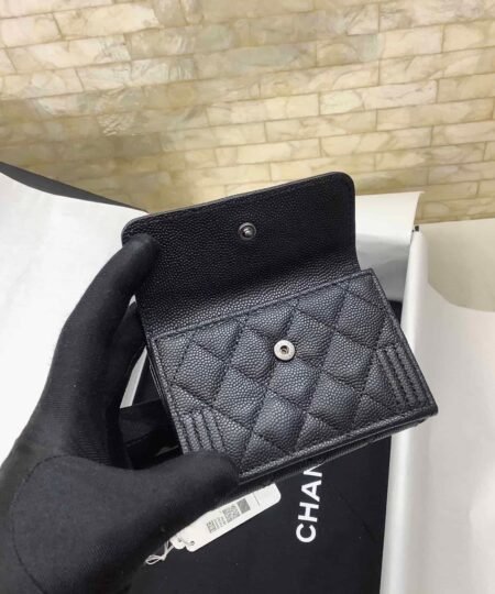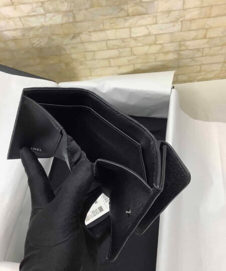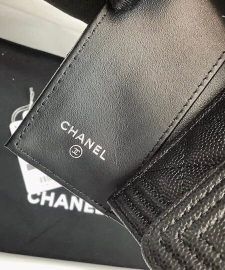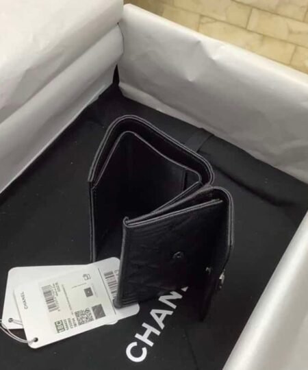 Chanel CO-CO Flap Card Holder Wallet 10.5cm/4.1in Silver Hardware For Women Black