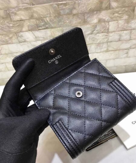 Chanel CO-CO Flap Card Holder Wallet 11.5cm/7.4in Silver Hardware For Women Black