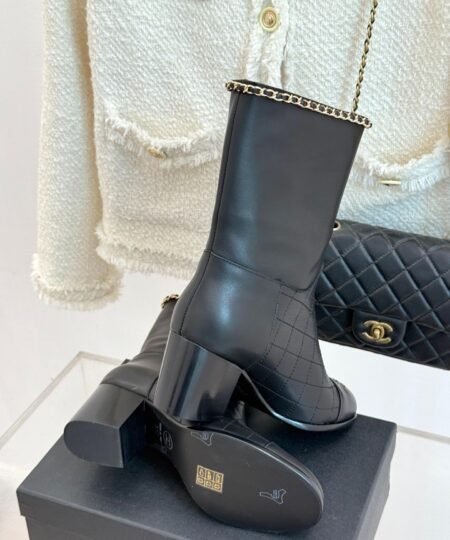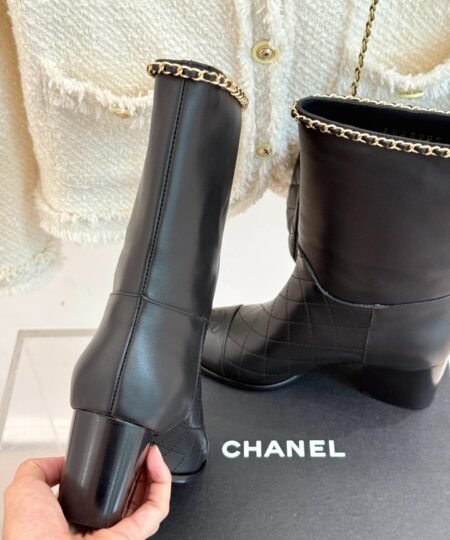 Chanel Double C Chunky Heel Boots With Chain Detail Black For Women
