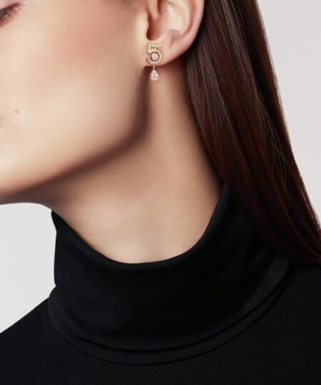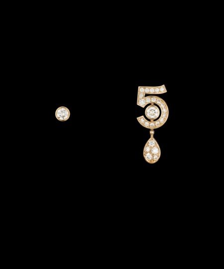 Chanel Eternal N°5 Transformable Earrings length of one earring is adjustable: with the long version worn attached behind the lobe or as a simple ear-stud.