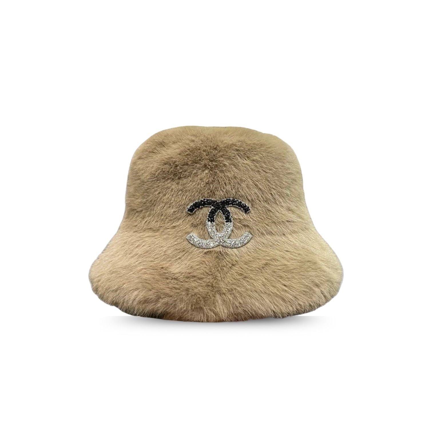 Chanel Faux Fur Bucket Hat Beige Iconic CC