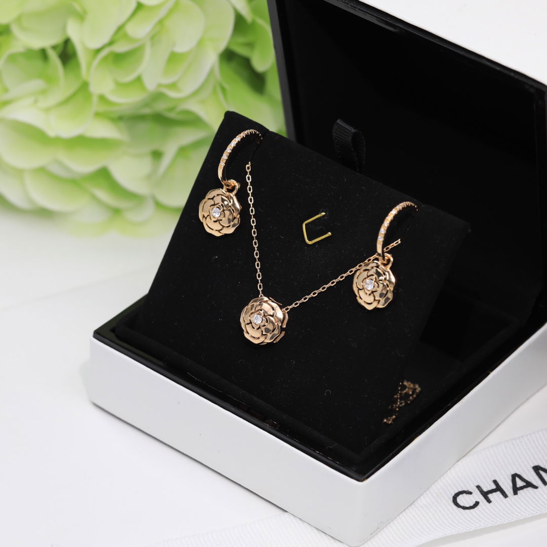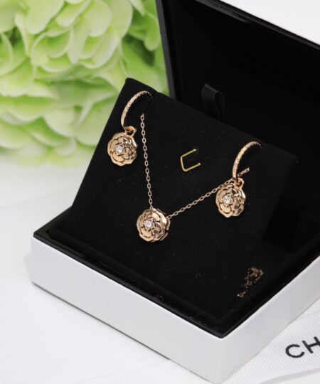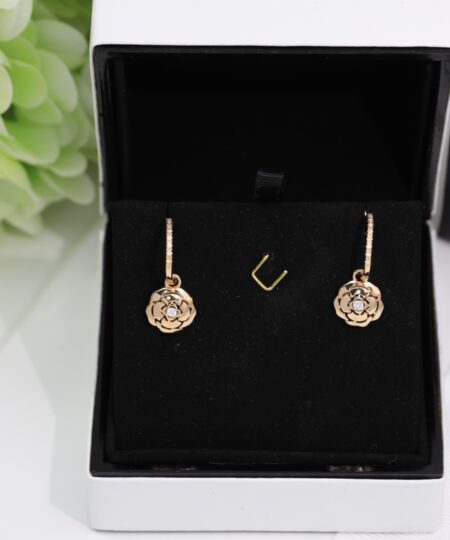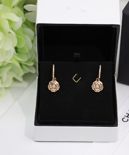 Chanel Hollow Camellia Earrings Gold For Women