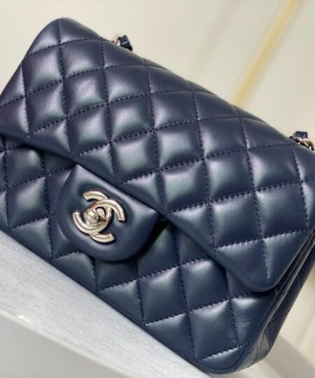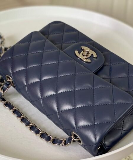 Chanel Classic Handbag Navy Blue For Women, Women’s Bags, Shoulder And Crossbody Bags 10.2in/20cm A01112