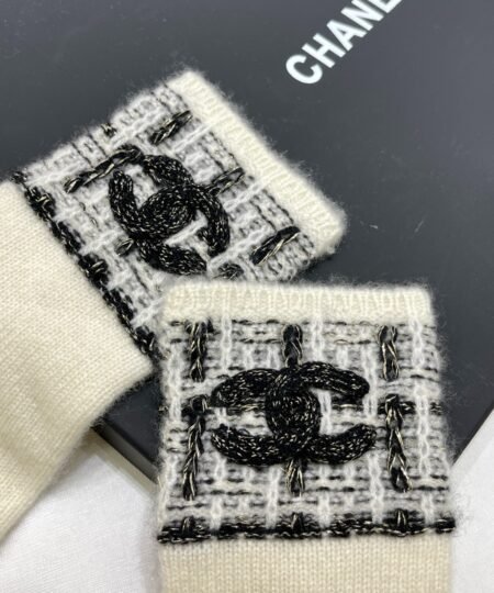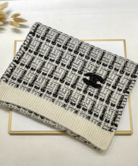 Chanel Monochrome Winter Knit Set – Hat, Scarf And Gloves Black & White For Women