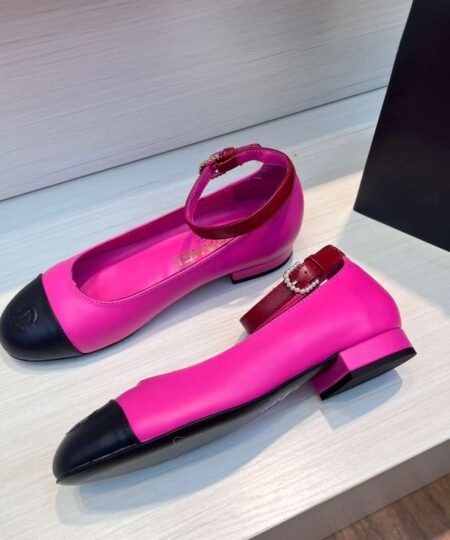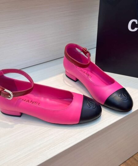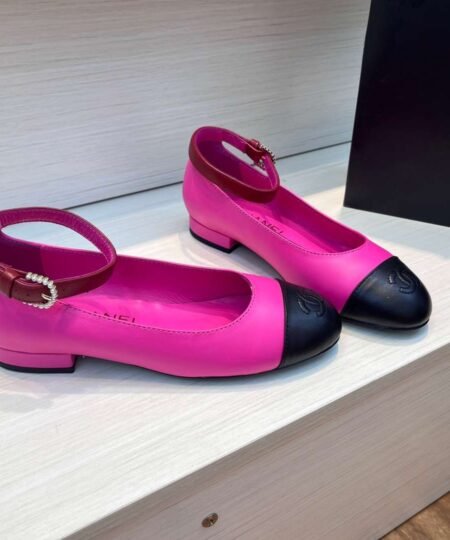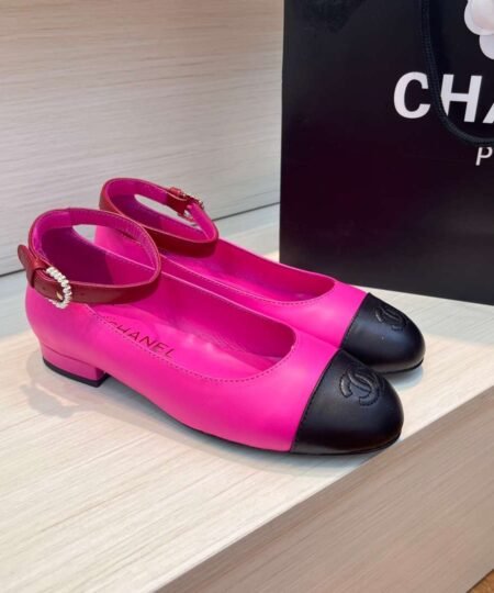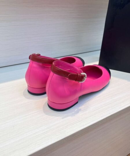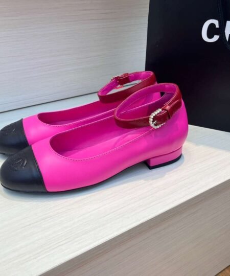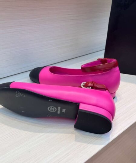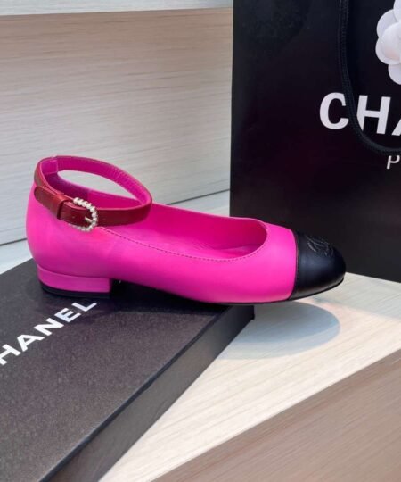 Chanel Round Toe Flats Buckle Strap Pearl Pink