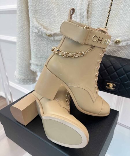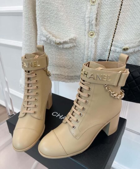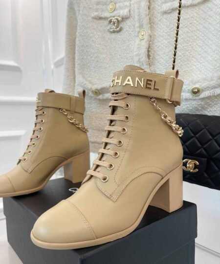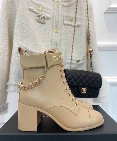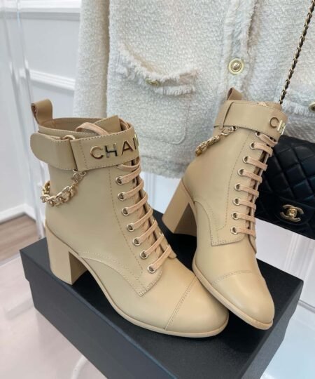 Chanel Women’s Lace-Up With Chain Beige For Women 3.7in/9.5cm