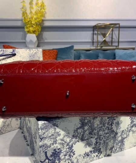 Christian Dior Large Lady Dior Bag Silver Hardware Cherry Red Patent For Women 12.5in/32cm CD