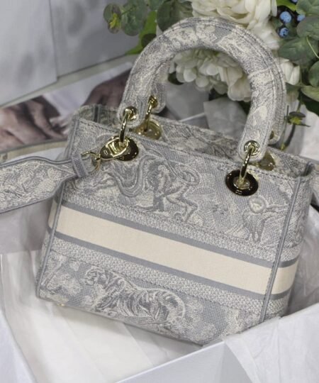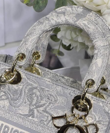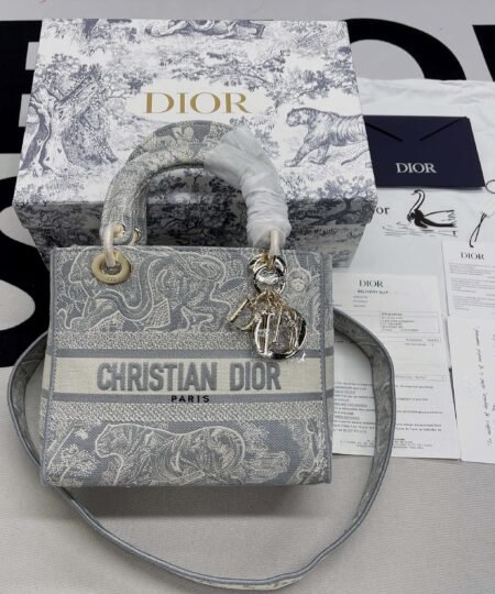 Christian Dior Medium Lady D-Lite Bag Grey, For Women, Women?s Handbags 24cm/9.5in CD