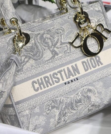 The Lady D-Lite Bag Combines Classic Elegance With House Modernity. The Front Features A ‘CHRISTIAN DIOR PARIS’ Signature While ‘D.I.O.R.’ Charms In Ruthenium-Finish Metal Enhance And Illuminate The Silhouette. Equipped With A Wide, The Medium Lady D-Lite Bag Can Be Carried By Hand Or Worn Crossbody.