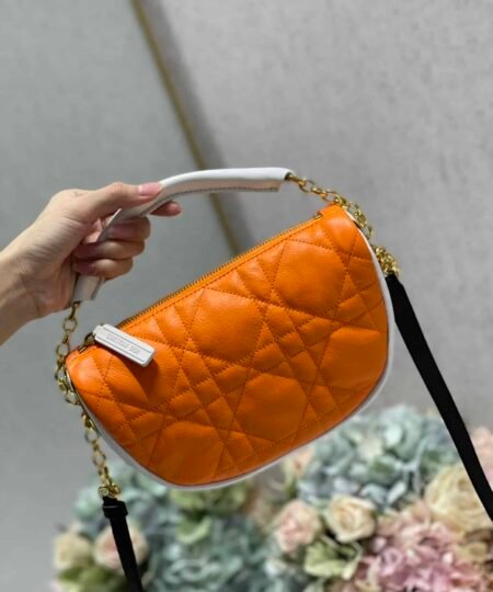 Christian Dior Small Dior Vibe Hobo Bag Fluorescent Orange Macrocannage, Orange, For Women Women’s Handbags, Crossbody Bags, 20cm CD M7200ODDO_M057