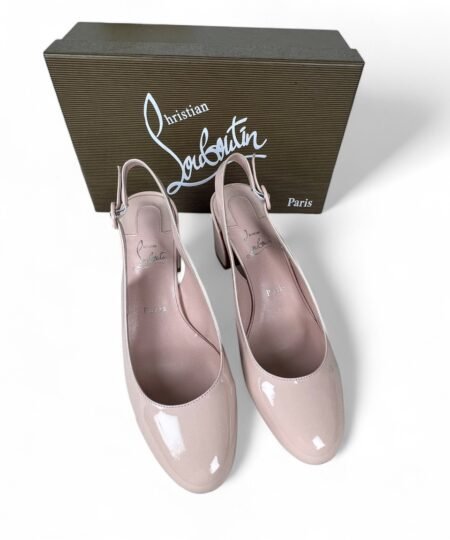 The timeless So Jane Sling pump enchants with sleek lines. This Maison Christian Louboutin slingback is crafted in Leche pink patent leather. It features a strap with a round tonal clasp on the side.