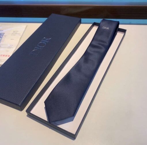 Dior ‘Dior’ Ribbon Tie Navy Blue Silk Dior Men Tie 29C1047A0675_C581