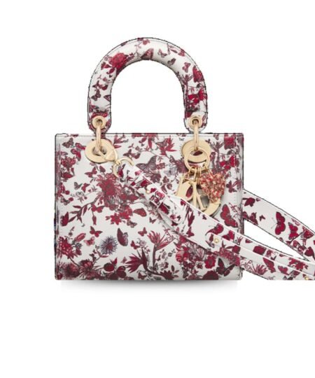 - The Lady Dior My ABCDior bag captures the House’s vision of elegance and beauty. Refined and sophisticated, the style is timeless. Celebrating Dior’s vision of love and romance, the white calfskin features the red Le C?ur des Papillons motif by Pietro Ruffo, showcasing a bouquet of flowers and butterflies. Pale gold-finish metal D.I.O.R. charms are embellished with a Heart charm with red lacquer butterflies. Featuring a shoulder strap that can be personalized by adding badges, the unique, small bag can be carried by hand or worn crossbody.