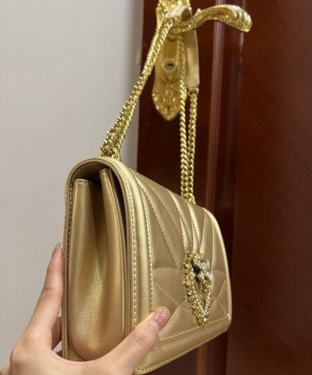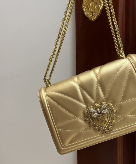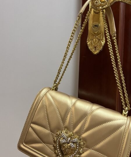 Dolce & Gabbana Large Devotion Bag In Quilted Nappa Gold For Women 10in/26cm DG