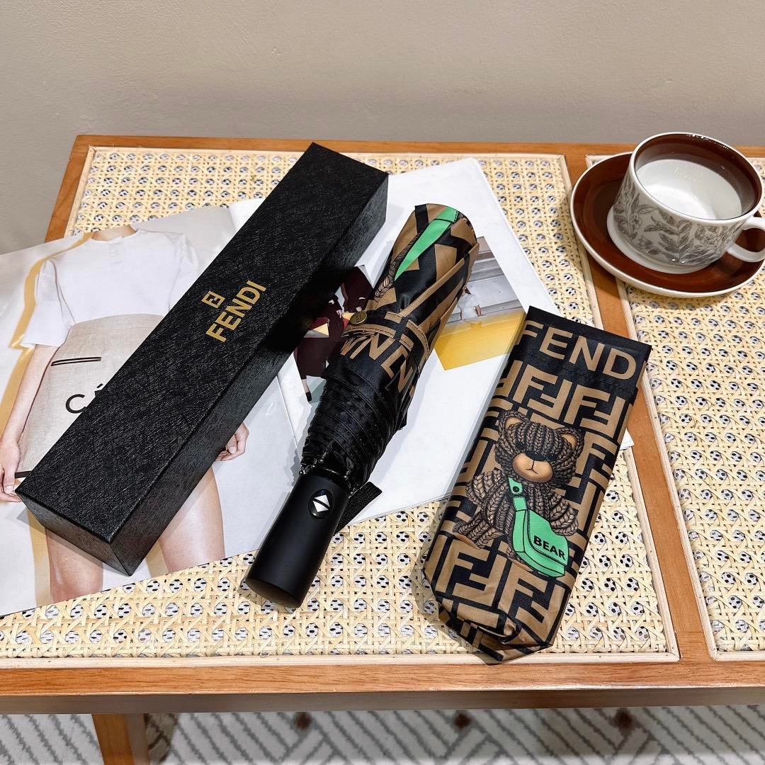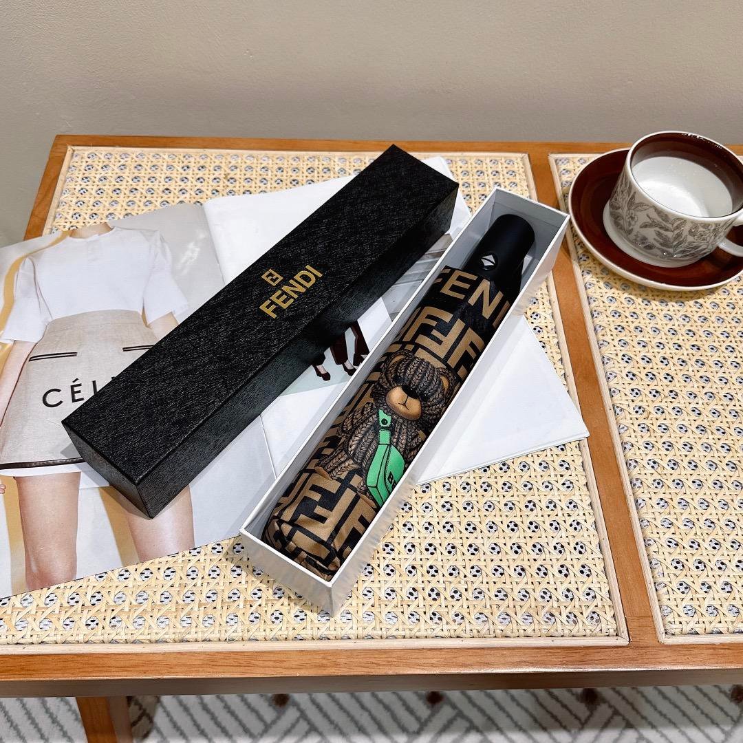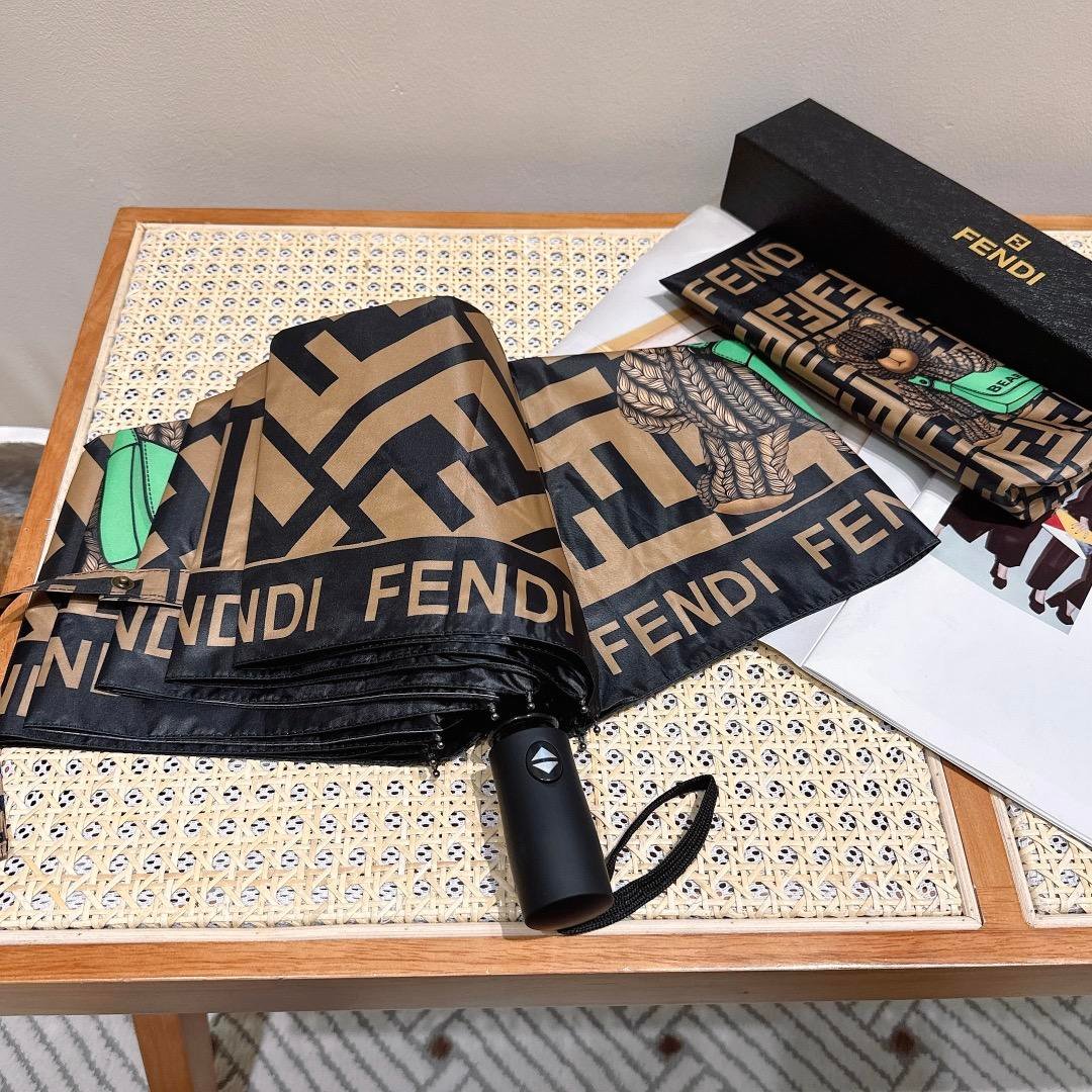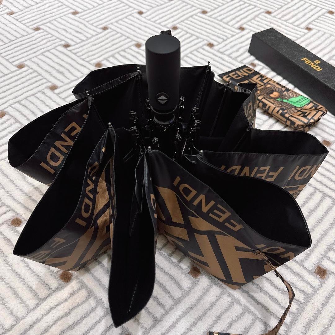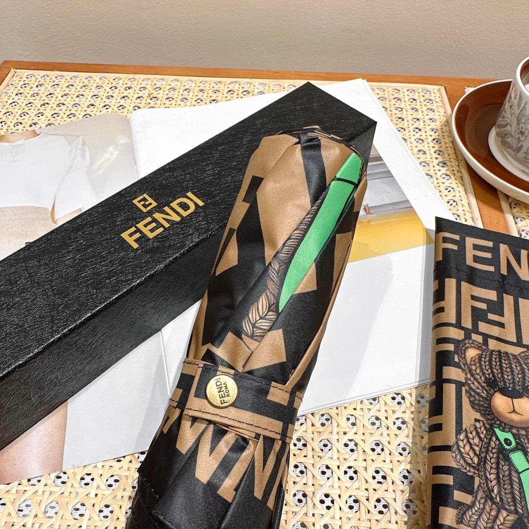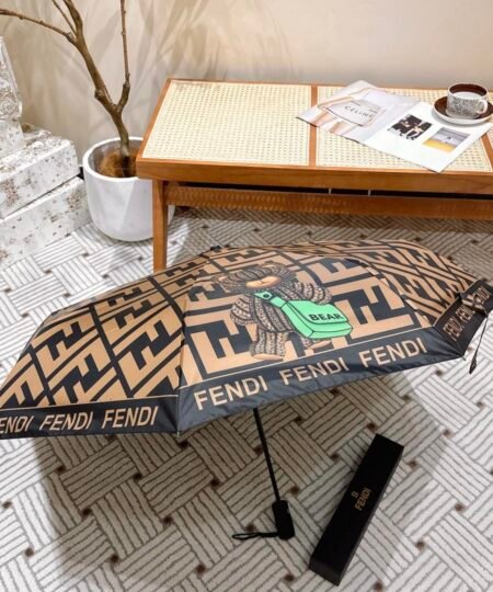 Fendi Logo Compact Umbrella Brown