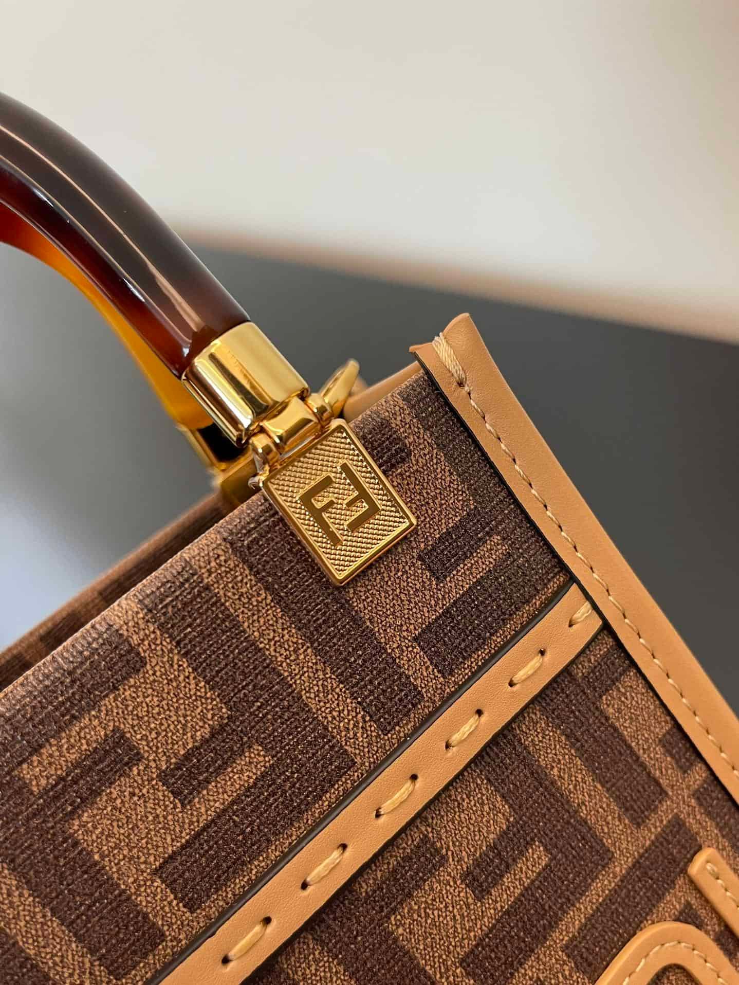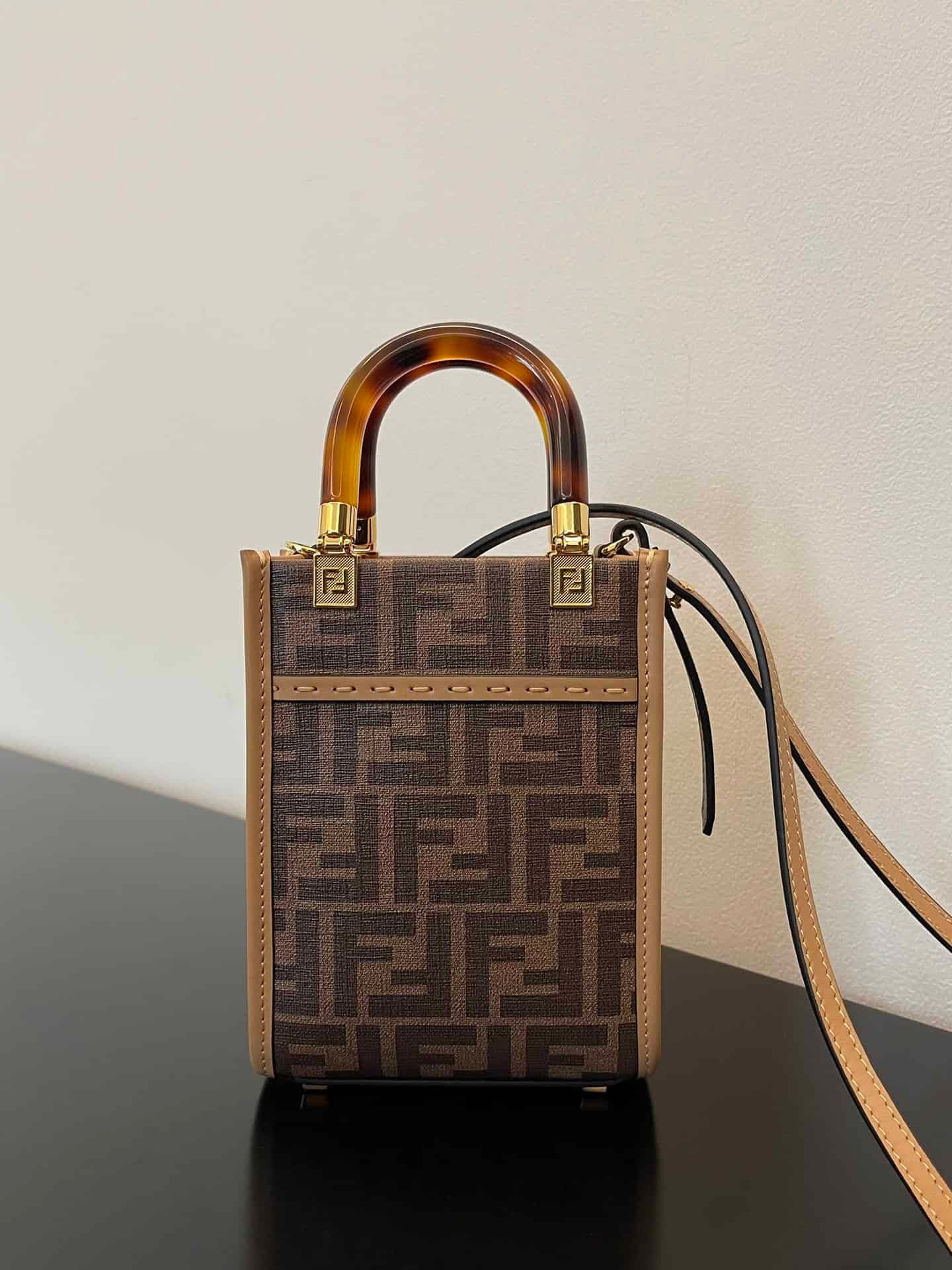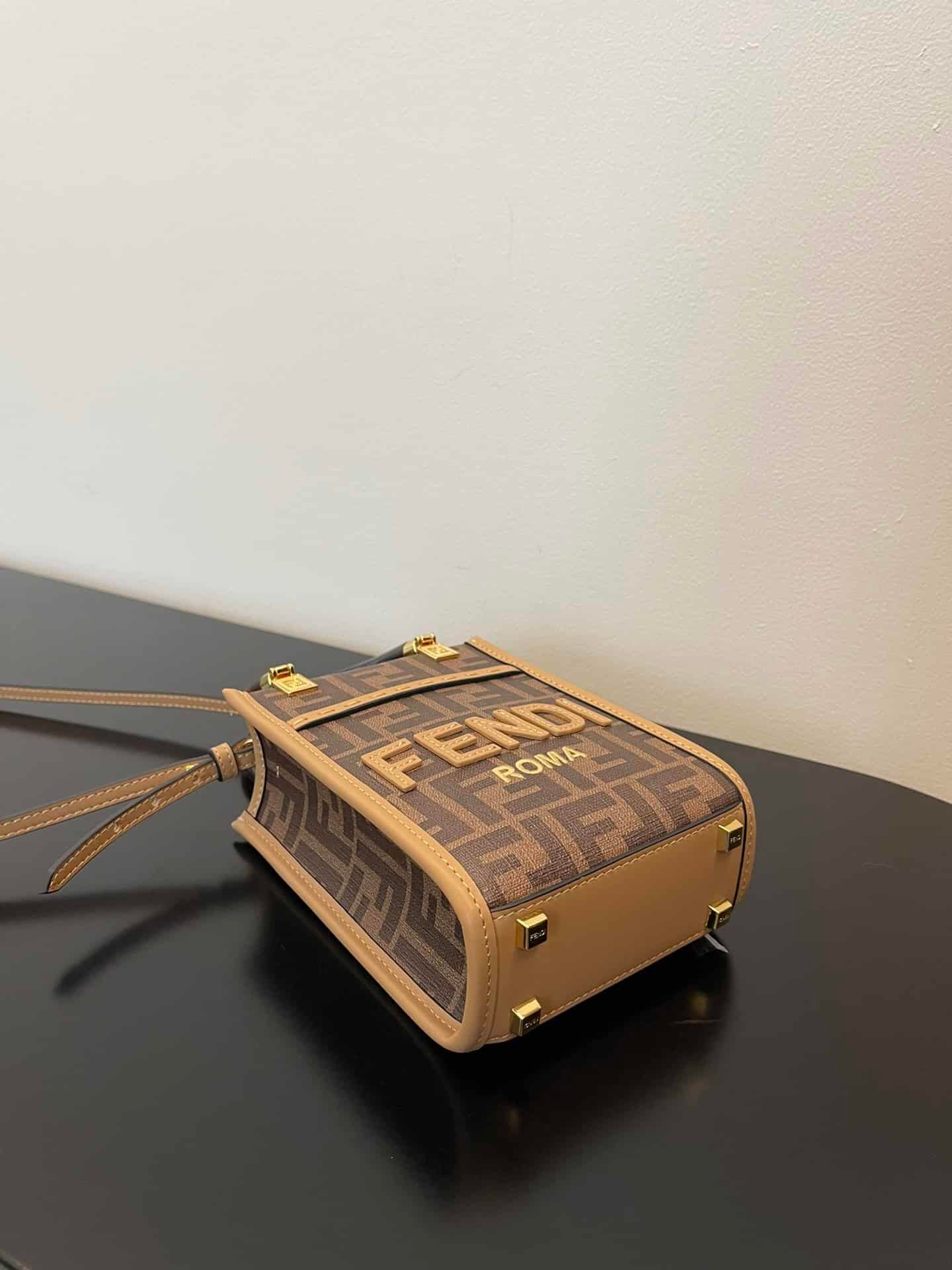 Fendi Sunshine Shopper Brown FF Fabric Brown Mini Bag For Woman 13cm/5in