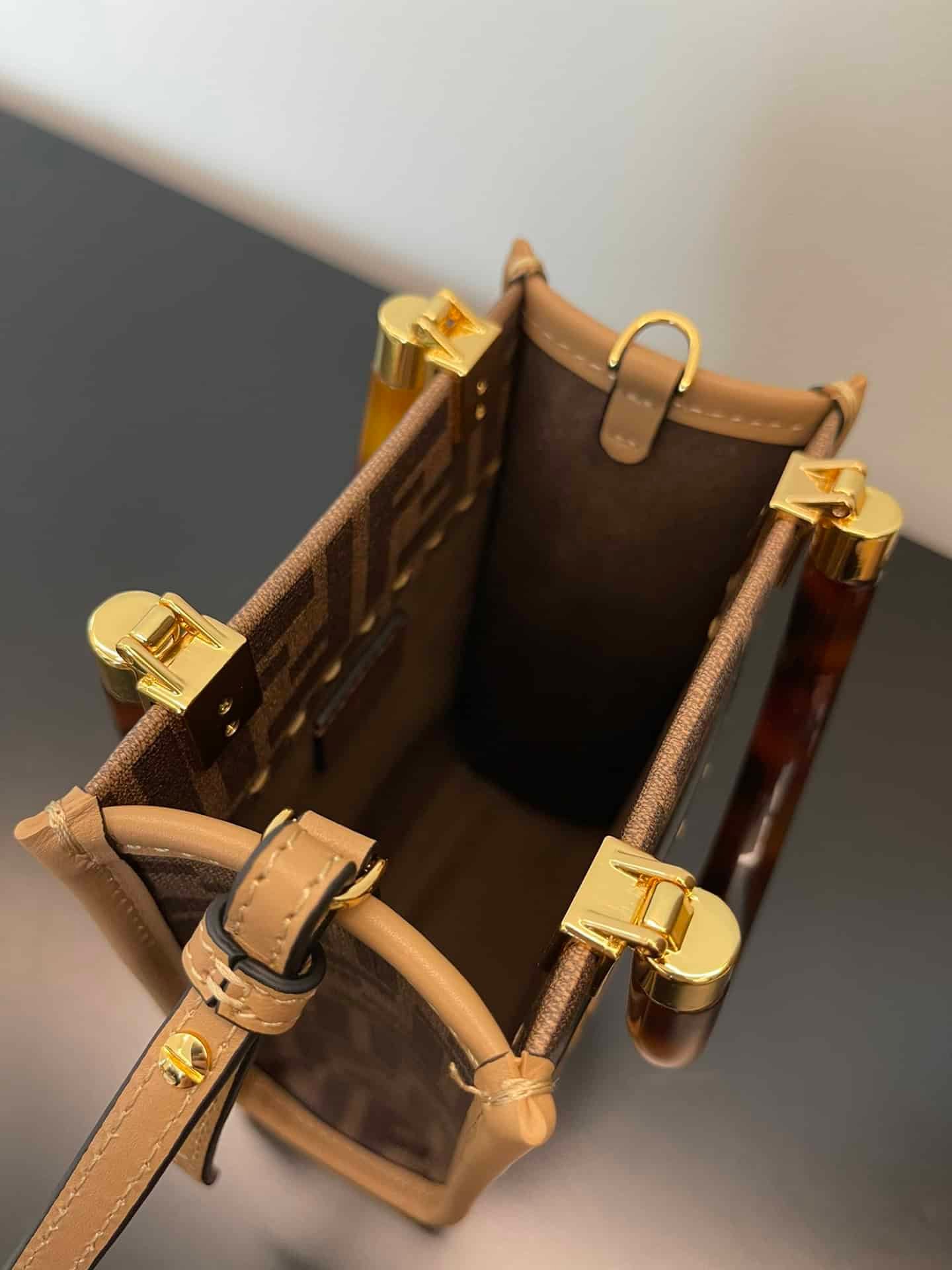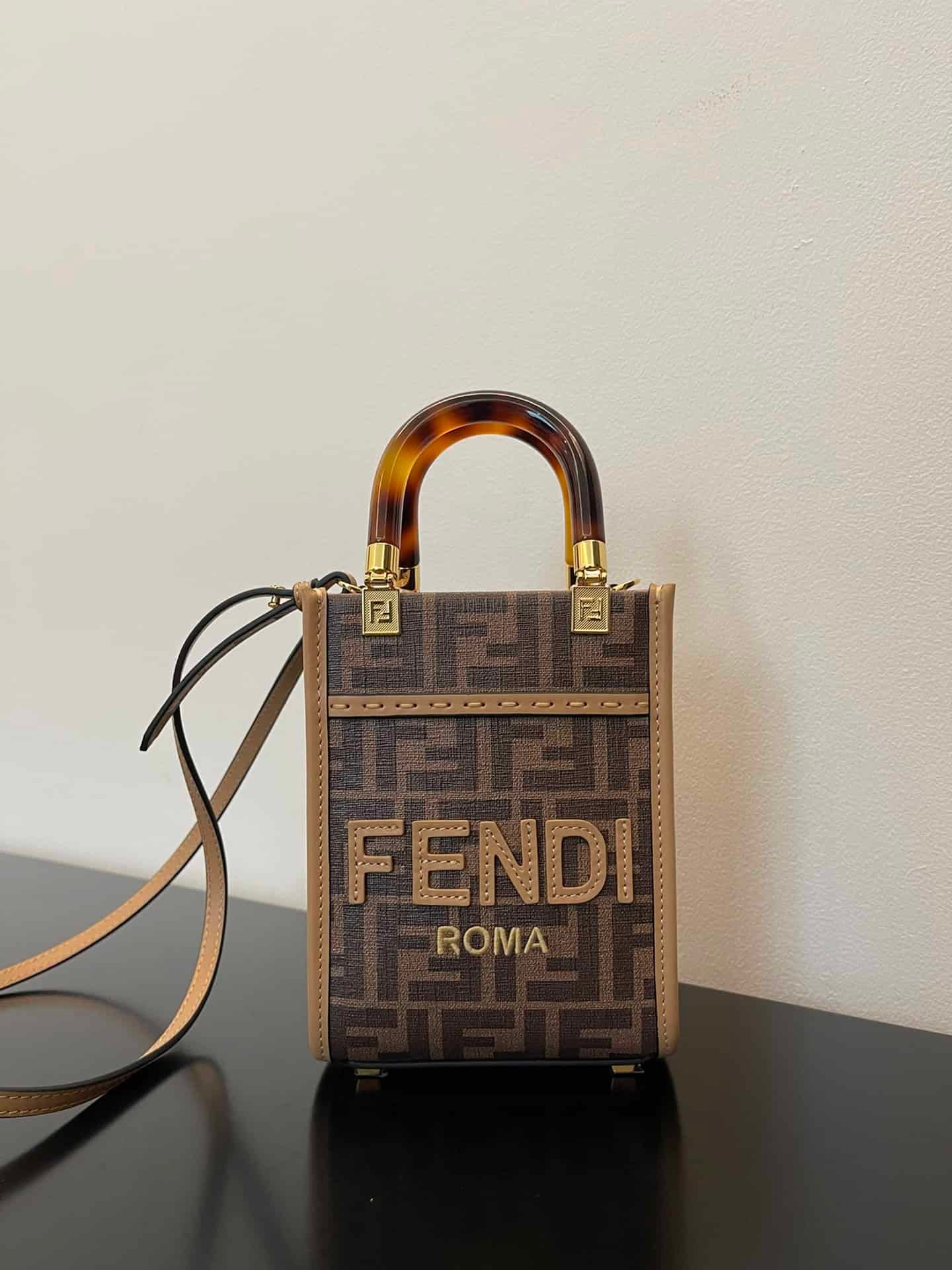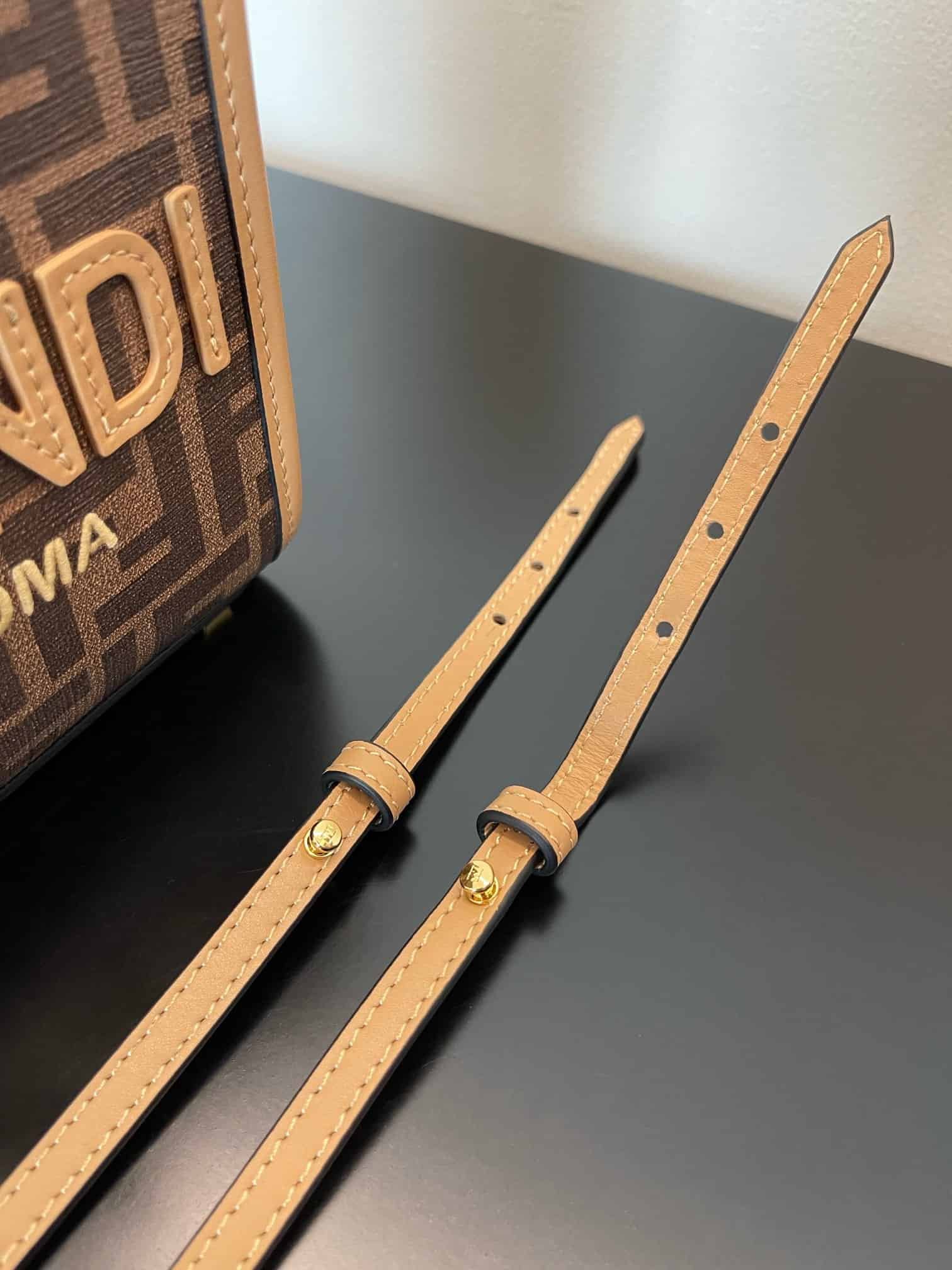 Fendi Sunshine Shopper Brown FF Fabric Brown Mini Bag For Woman 13cm/5in