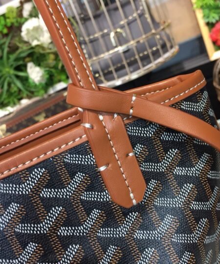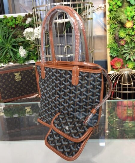- The Anjou Mini bag is a nod to our emblematic Saint Louis bag but in a version lined with Goyardine. It has two different styles and looks. Its handles with their progressive thickness make it easy to hold and comfortable to carry. Thanks to its miniature size, the Anjou Mini bag is ideal for the evening or for taking care of your essential belongings throughout the day.