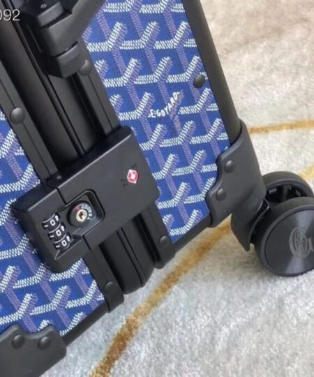 The Bourget PM trolley case is a carry-on rolling suitcase perfect for all your journeys. Resistant, rigid and light, it is practical with its 360 degree wheels and secure with its many closing systems borrowed directly from trunks. - Handle, plastic telescopic handle, elastic support straps at trunk-style corners on each side, internal compartments to secure items, internal zipped pocket, 23 liter capacity