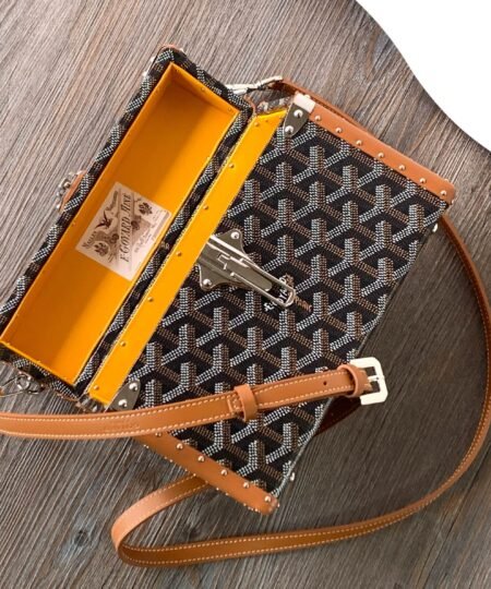 - The Cassette Trunk expresses the innovative timelessness typical of Goyard, and stems from the Maison’s seminal trades: trunk making. Thanks to its clasp and compact size, its ideal for keeping everyday essentials safe and combines elegance, refinement and a lightness. Thanks to its additional strap, the bag can be worn in several different ways.