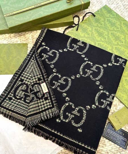 Gucci Check GG Wool Scarf Black And Multicolor 180cm/71in For Women – 660025 4G386 1066