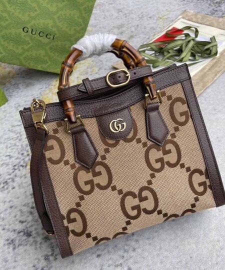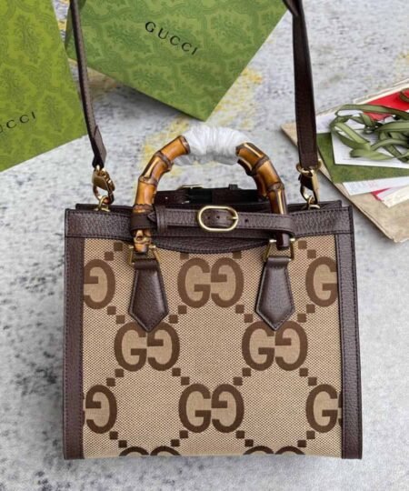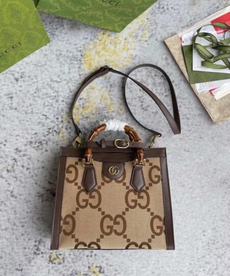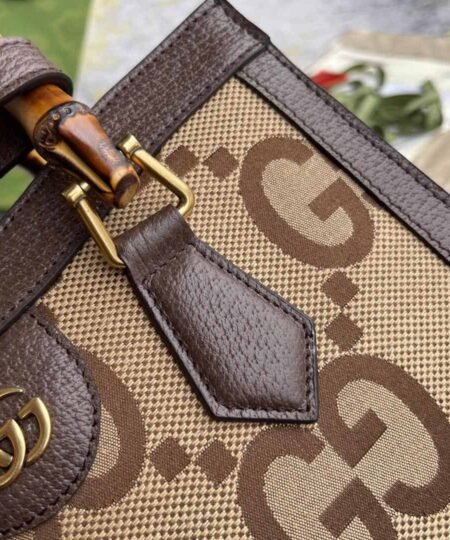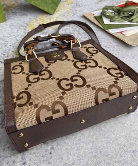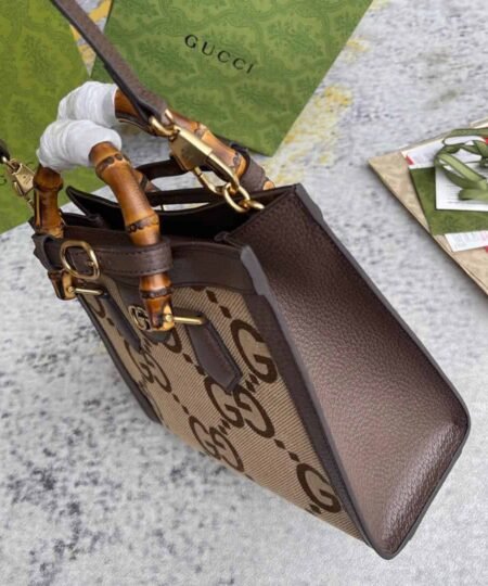 Gucci Diana Jumbo GG Small Tote Bag Camel And Ebony Jumbo GG Canvas Brown For Women 11in/28cm 660195 UKMFT 2672