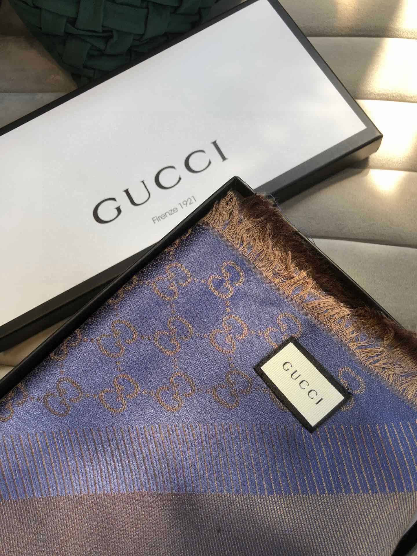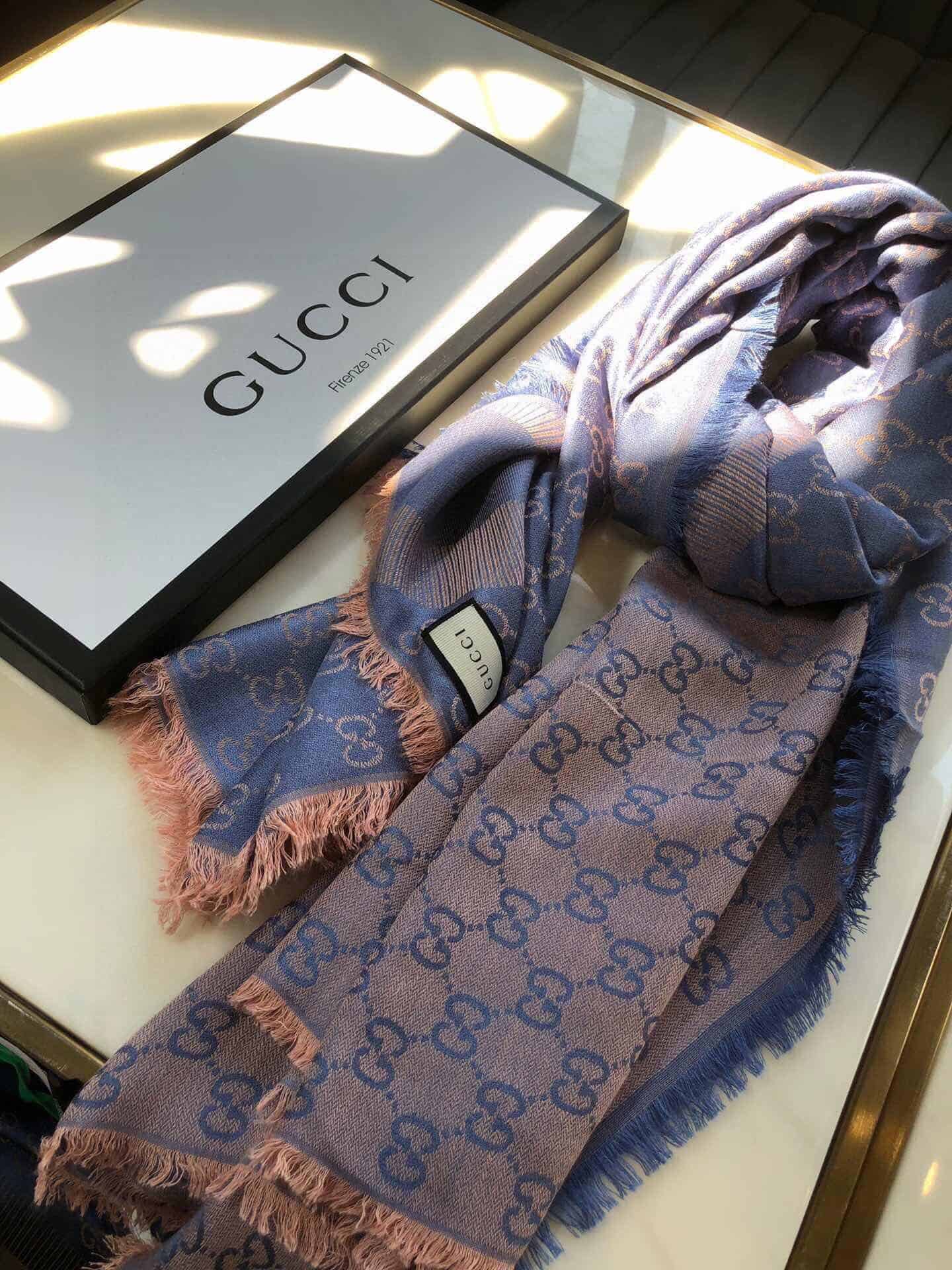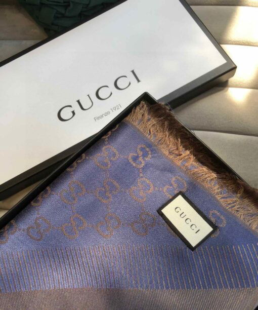 Gucci GG Jacquard Silk Wool Shawl Blue 55in/140cm