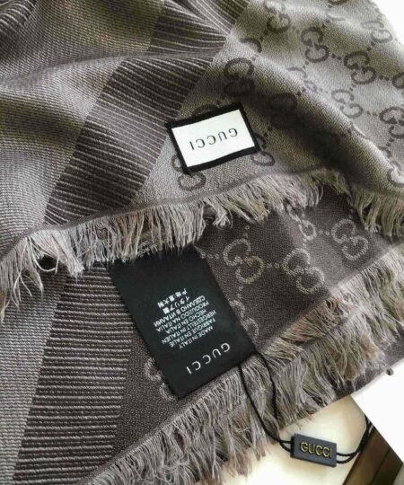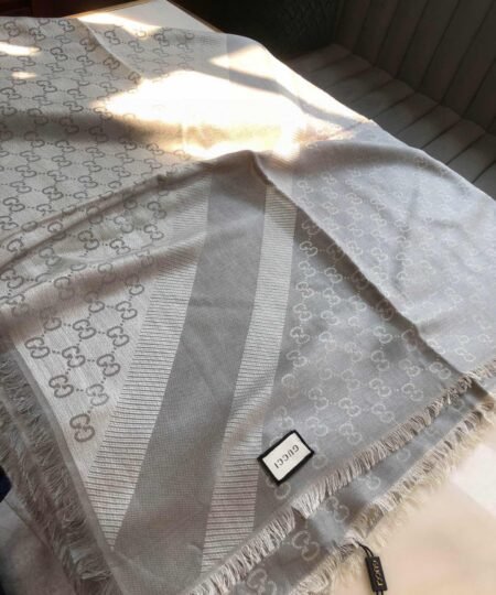 Gucci GG Jacquard Silk Wool Shawl Grey 55in/140cm