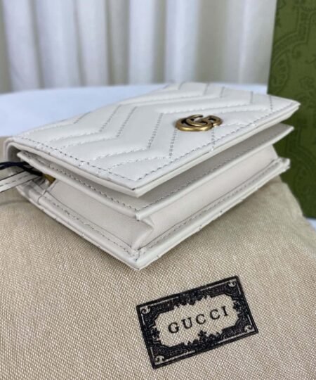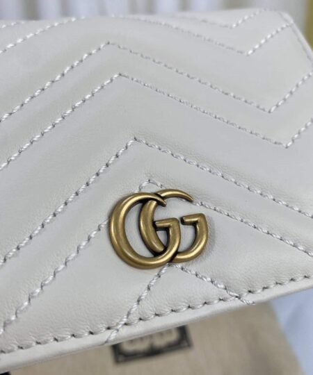 - The GG Marmont collection is defined by the emblematic Double G hardware a contemporary take on a Gucci archival belt buckle from the 70s that has become a hallmark of the House. This card case wallet is crafted with the same matelasse leather as the bags from the rest of the collection.