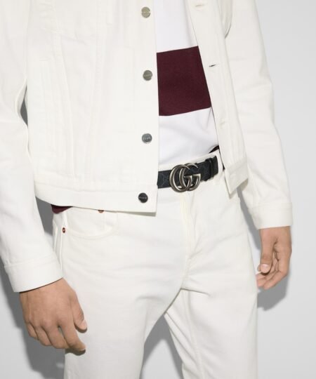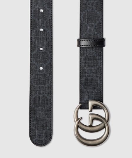 For the Cruise 2025 collection, historic codes of the House are reinterpreted in new ways with a contemporary touch. Presented in black GG Supreme canvas, this GG Marmont thin belt is finished with a ruthenium hardware.