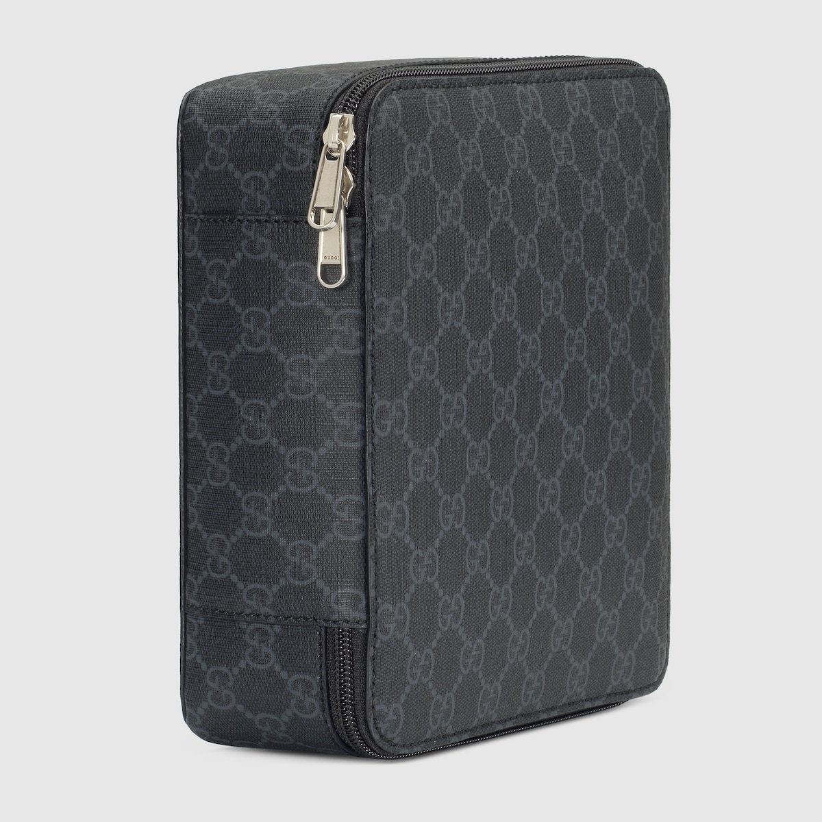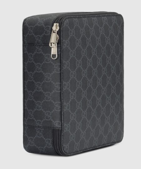 - Gucci’s latest travel selection takes its roots from 1900s; the heyday of luxury luggage. This packing cube is designed to compliment other Gucci luggage pieces and is crafted from the House’s unmistable GG Supreme canvas in black. A black trim completes the design, while the zip closure allows for easy access.