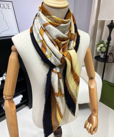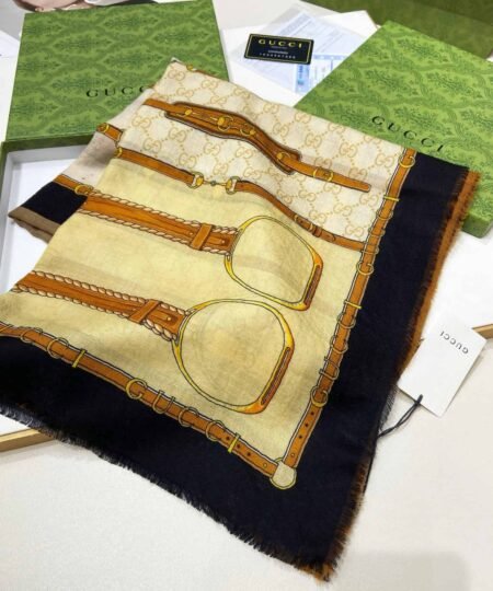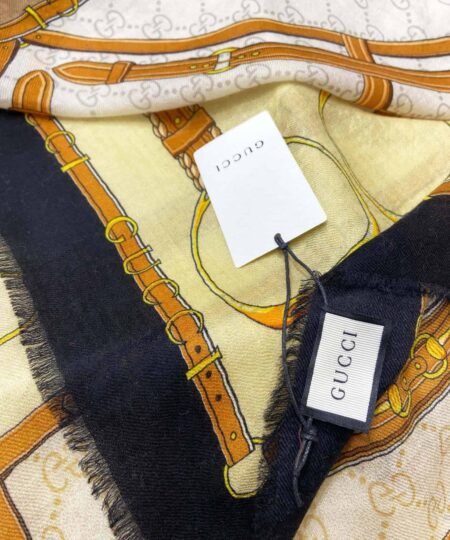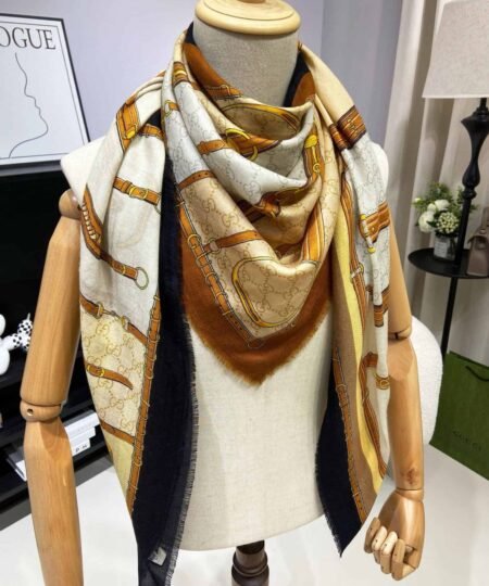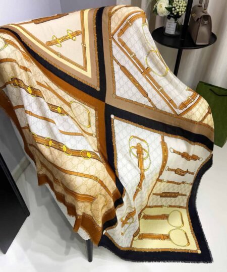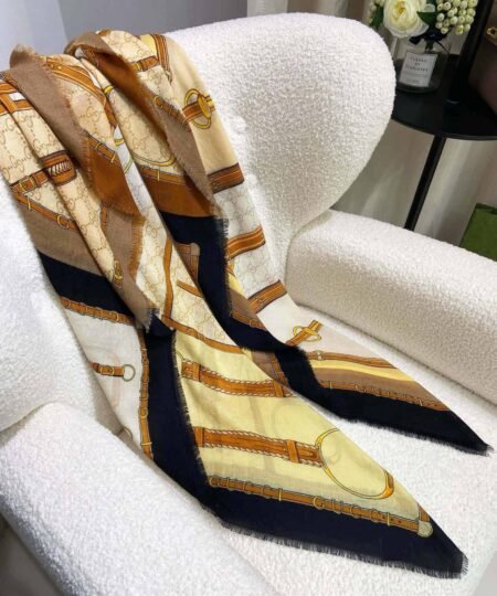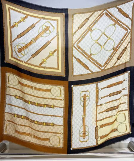 Gucci Heritage Print Silk Scarf Dark Brown And Beige 140cm/55in For Women