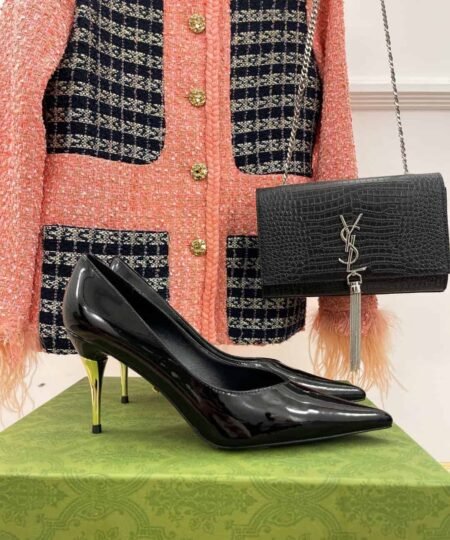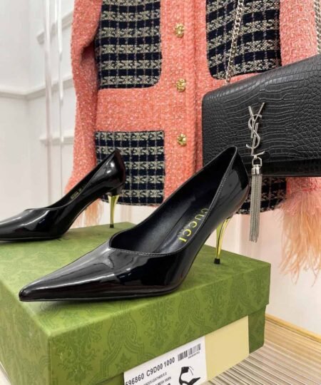 - A play on the classic silhouette, this pair of pumps is characterized by a metal stiletto heel for a modern feel. The pointed toe completes the design.