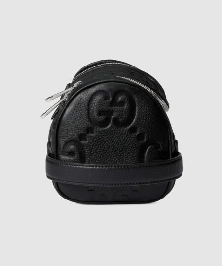- A reinterpretation of Guccio Gucci’s initials, the jumbo GG motif is an evergreen of the House that appears in maxi-sized dimensions for an eye-catching logo feel. The all-black variation of the emblem defines this small toiletry case.