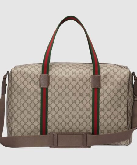 - The GG Supreme is inspired by an archival design from the 1930s and remains one of the House’s most emblematic materials. Presented in the traditional colorway atop this duffle bag, the canvas is representative of timeless pieces and everlasting design.