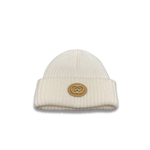 This Gucci GG Beanie Hat is a refined winter accessory that blends comfort with luxury. Crafted in an elegant ivory tone, the hat features a ribbed knit construction that provides warmth while maintaining a clean, structured silhouette.