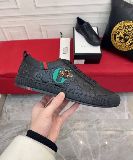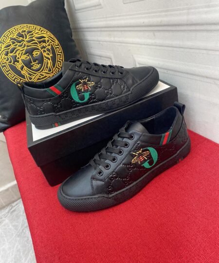 Gucci Men’s Ace GG Embossed Sneaker With G And Bee Black For Men 625787