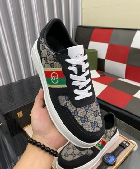 Gucci Men’s GG Embroidered Logo GG With Web Sneaker Black For Men 669582