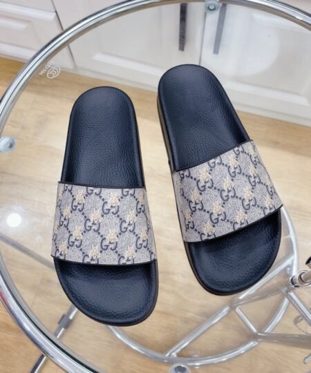 Gucci Men’s GG Slide Sandal With Bees Black For Men 407345