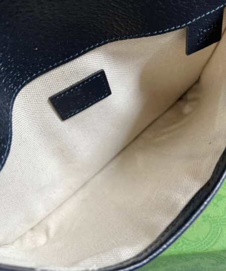 Mirroring the material’s historic origins, GG Supreme is introduced in a timeless mix of blue and beige for Gucci Love Parade. The canvas has come to the front of each collection decade after decade to become a hallmark of the House. Here, the classic palette defines this Ophidia belt bag.